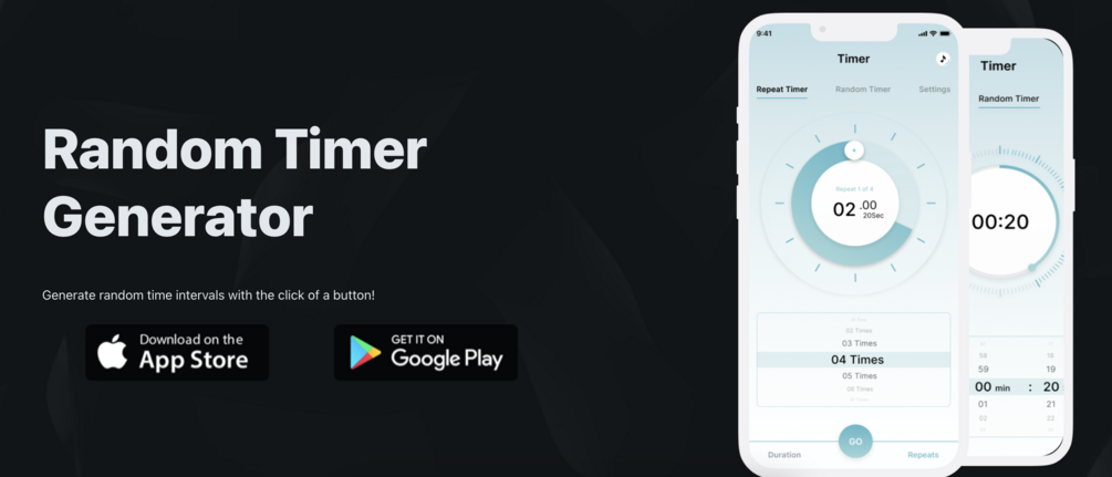http://randomtimer.org comes with 2 main features i.e. set an interval timer of your choice along with 20+ repetition and generate any random time by setting the time period. You also get the option to hide countdown and repeat the function on loop.